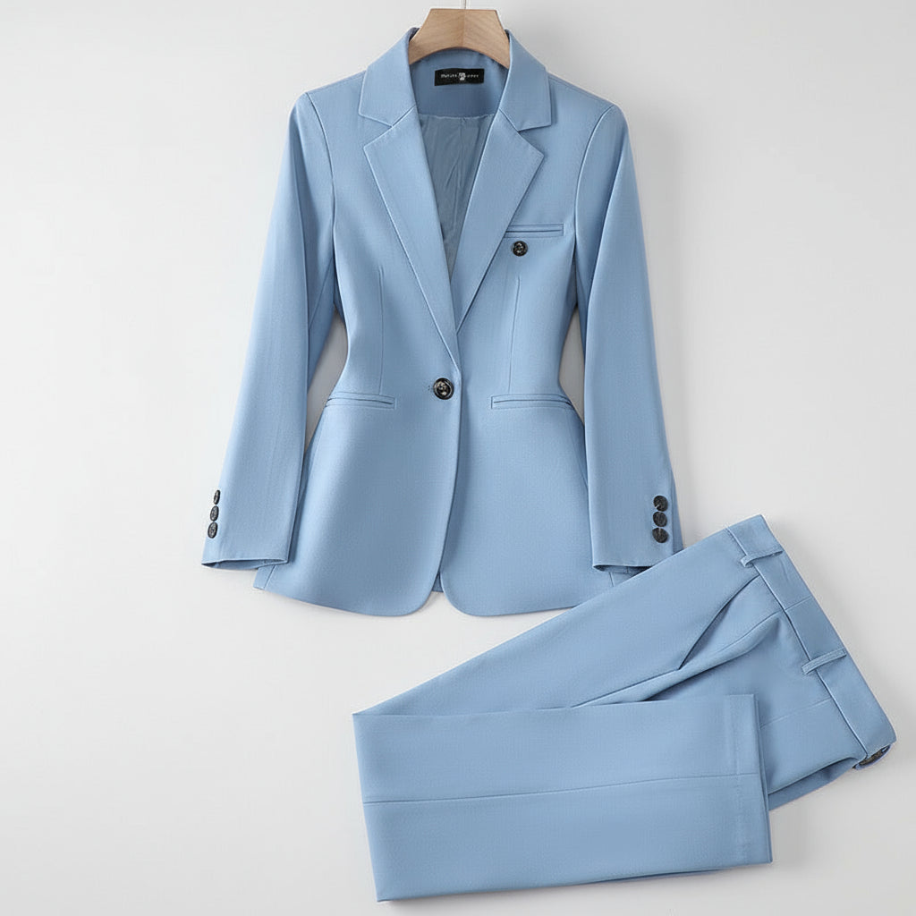 Το Claire - Κομψό Σετ Μπλέιζερ είναι η τέλεια επιλογή για μια απαιτητική και κομψή εμφάνιση. Με τον διαχρονικό του σχεδιασμό και την κομψή του γραμμή, αυτό το σετ μπλέιζερ προσθέτει αμέσως μια πινελιά κλάσης σε κάθε ντύσιμο. Είτε στο γραφείο, σε επίσημες περιστάσεις ή για μια βραδιά στην πόλη, αυτό το σετ εκπέμπει πάντα κομψότητα.