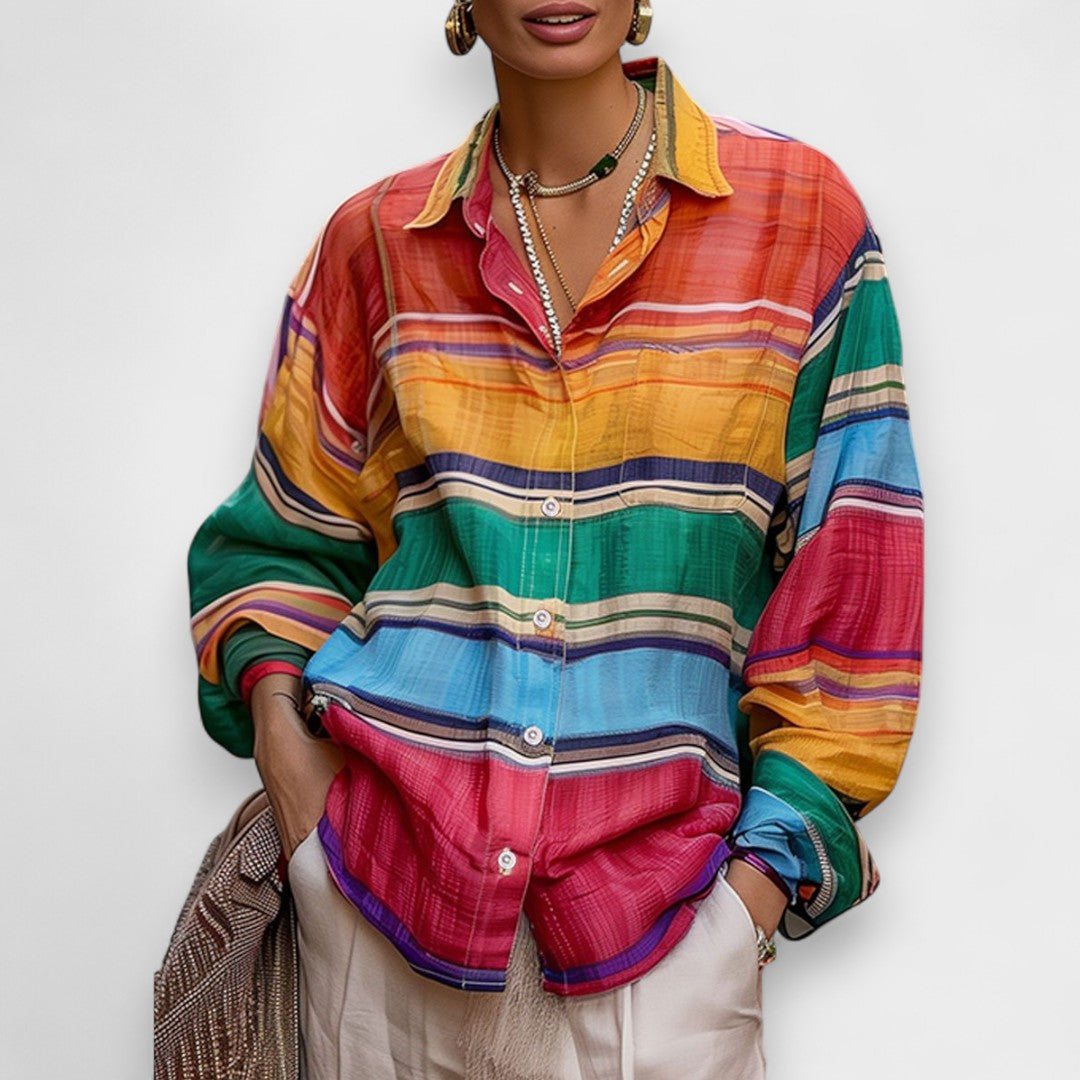Chic Μπλούζα με Γιακά από Λινό σε Ουράνιο Τόξο