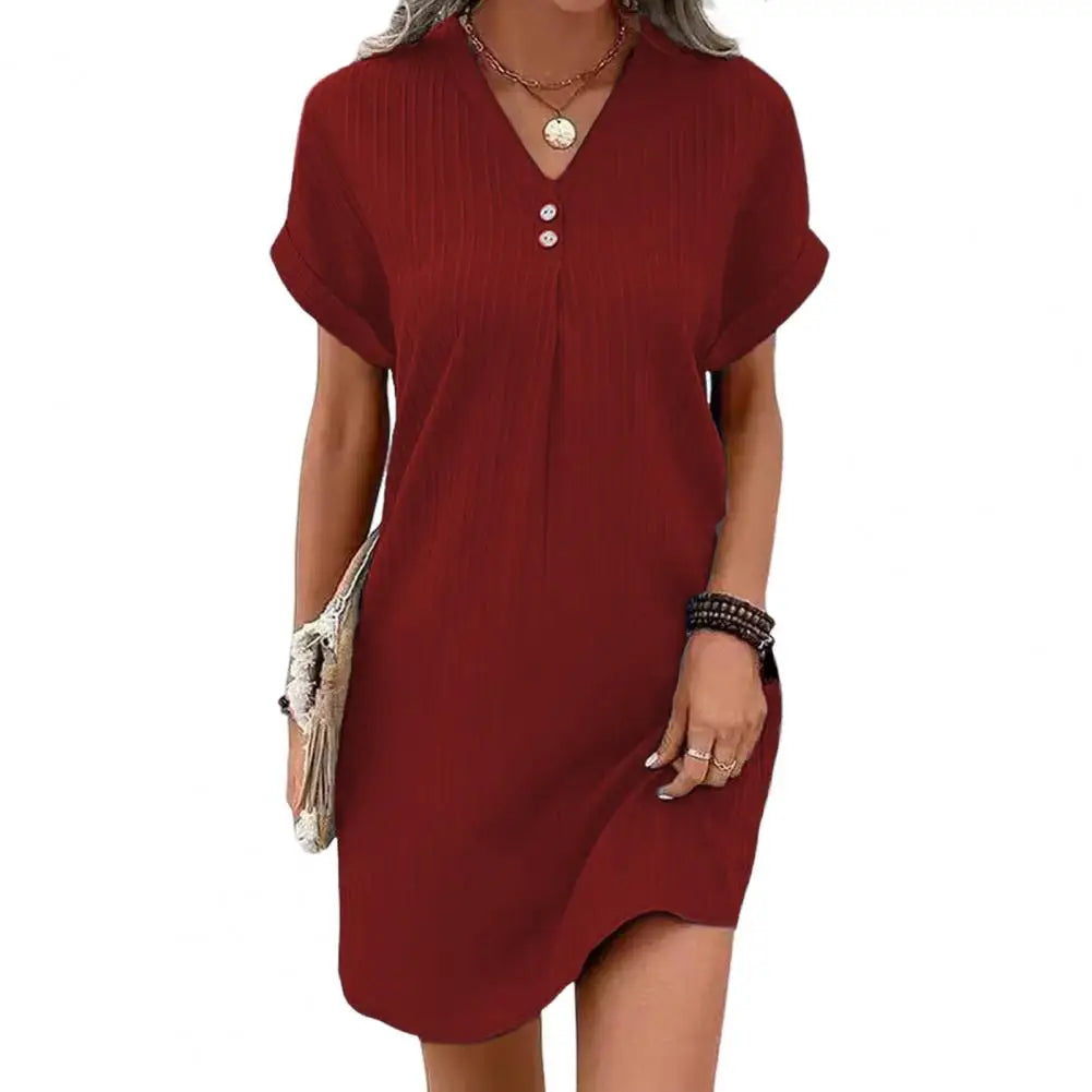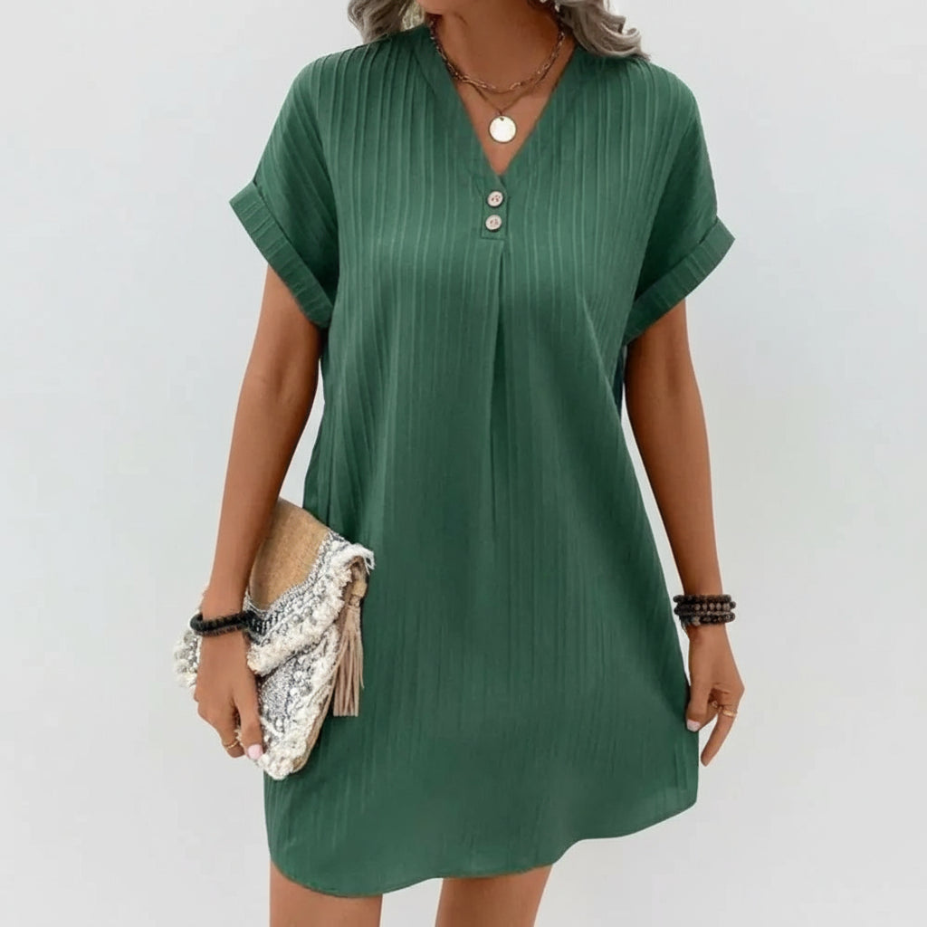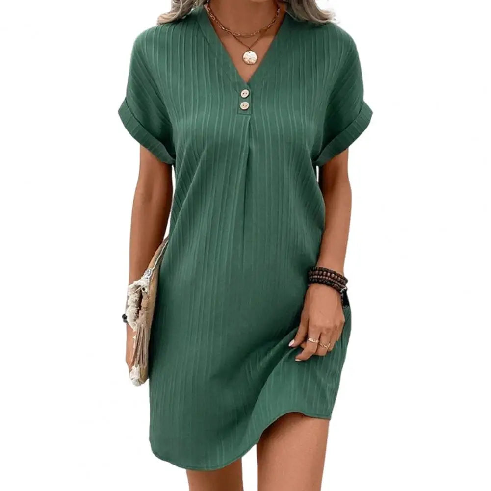 Με το V ντεκολτέ, 🌸 λεπτό κοντό μανίκι και λεπτομέρειες από κομψά κουμπιά, προσφέρει μία φρέσκια και κομψή αίσθηση χωρίς να χάνει τη σοφιστικέ ατμόσφαιρα.